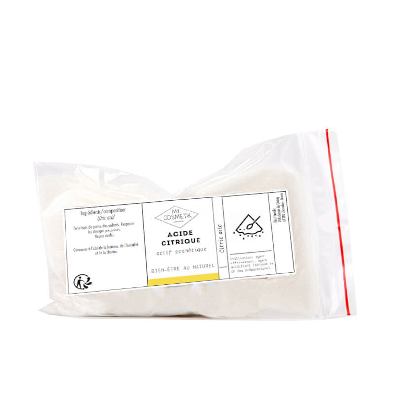 L'acide citrique présente deux actions principales. La première est l'ajustement du pH (c'est à dire le degré d’acidité d’une solution aqueuse) de vos préparations cosmétiques. Notre peau possède un pH légèrement acide, ce qui lui permet de lutter contre la croissance de bactéries ou de champignons, c'est pourquoi il est important que vos cosmétiques respectent ce pH.