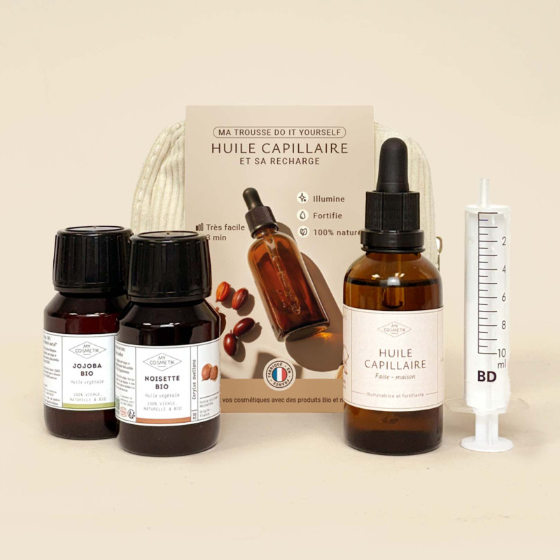 Cette trousse comprend tout le nécessaire pour créer votre huile capillaire de 50 ml, puis profitez d'une recharge restante pour prolonger le plaisir :