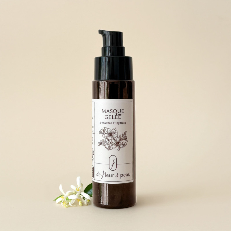 Notre Masque gelée désaltérante est soigneusement conditionnée dans un flacon en verre ambré, alliant élégance et efficacité. Ce choix de packaging n’est pas seulement esthétique, il joue également un rôle essentiel dans la préservation des actifs.