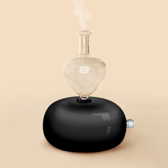 Le principe est le suivant : l’huile essentielle est aspirée puis soufflée et propulsée à grande vitesse contre la paroi en verre, créant ainsi une brume d’huile essentielle pure (c'est-à-dire des milliers de micro particules d’huile essentielle dans l’air). Ces micro particules sont ensuite propulsées par le haut de la verrerie dans votre pièce.