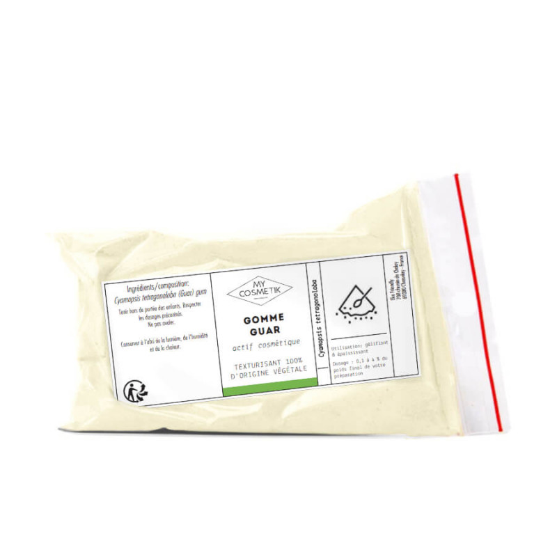 La gomme guar est un agent épaississant donnant de la consistance à vos gels et à vos émulsions. Elle gélifie l'eau et toutes autres solutions aqueuses. Très facile à utiliser, elle permet une gélification à froid comme à chaud. Elle permet d'apporter une texture douce et glissante à toutes types de crèmes. Son petit plus : elle renforce la stabilité de vos crèmes en maintenant l'émulsion intacte dans le temps. Enfin, elle est également reconnue pour être légèrement hydratante et protège du dessèchement cutané.
