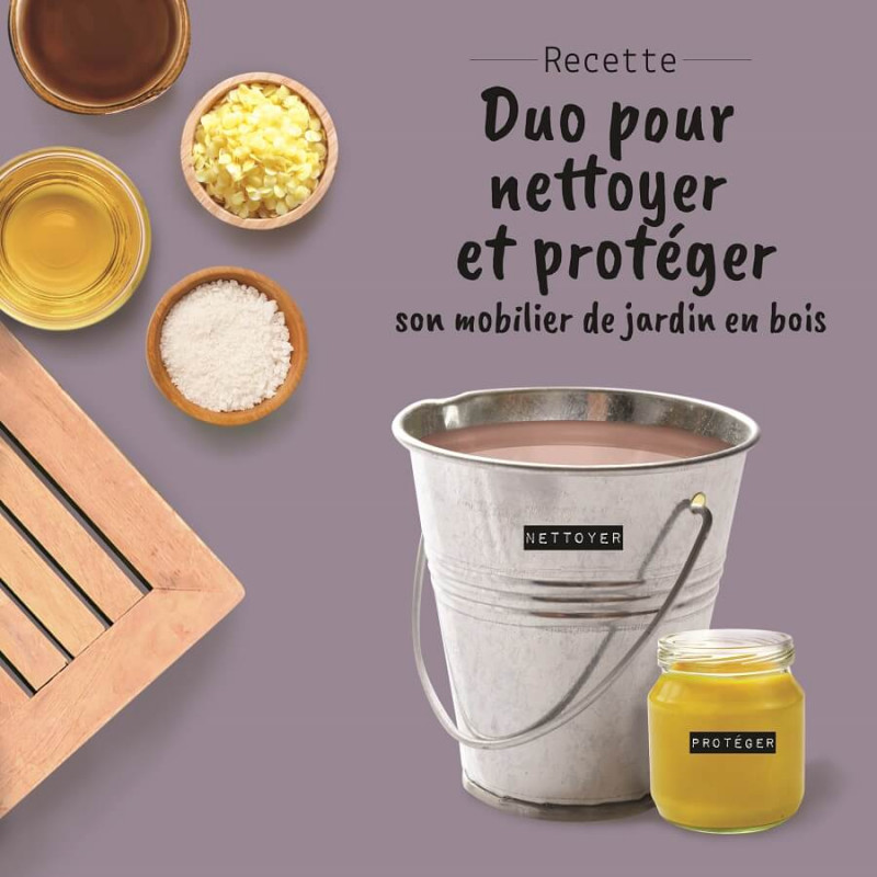 Si vous souhaitez prendre grand soin de votre mobilier de jardin en bois, il est important de le nettoyer en profondeur pour enlever graisses, taches, mousses, salissures, lichens et autres impuretés qui ont pu s’y incruster au fil des mois. Il est ensuite très important de le protéger avec une cire liquide pour éviter que la pluie, l’humidité, le soleil et le gel ne l’endommagent. Voici donc une routine en deux étapes pour entretenir au mieux vos meubles de jardin en bois.