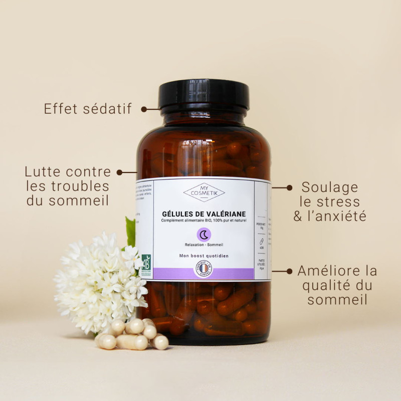 La valériane bio est connue pour ses propriétés relaxantes et apaisantes, agissant sur le système nerveux central pour réduire le stress, l'anxiété et les troubles du sommeil tels que l'insomnie. Les gélules de valériane offrent un effet sédatif doux, favorisant un sommeil naturel et réparateur sans provoquer de somnolence excessive le lendemain. De plus, en raison de ses propriétés relaxantes, la valériane peut également soulager la tension musculaire et les spasmes.