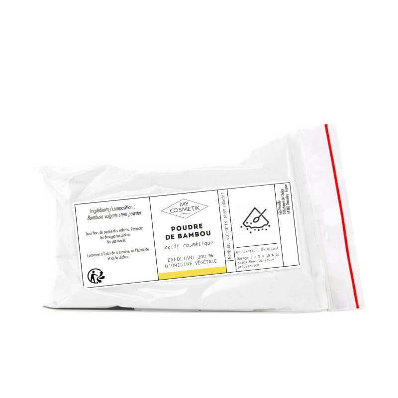 La poudre de fibres de bambou 100% naturelle est un exfoliant ultra-doux, très apprécié par les peaux sensibles et réactives. Particulièrement adapté pour le gommage du visage, il s'incorpore dans les gels, masques et crèmes. Vous pouvez également l'incorporer dans vos cosmétiques solides pour réaliser un pain exfoliant ou une barre de massage par exemple.