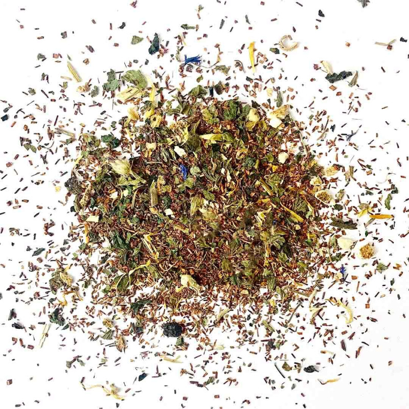 Rooibos naturel*, ortie*, écorces d'orange*, arôme naturel d'orange, aronia*, fleurs de souci*, arôme naturel de mangue, pétales de rose*, fleurs de bleuet*, mangue*.