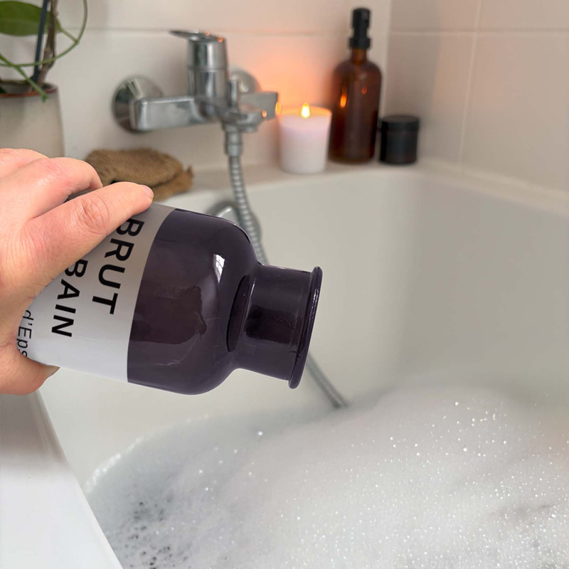 Une fois le sel de bain terminé, le pot en verre ambré trouve une seconde vie : élégant et durable, il peut être réutilisé pour accueillir des fleurs séchées ou de petits objets du quotidien.